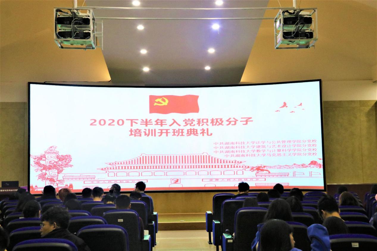 2020年10月17日上午八点整,法学与公共管理学院与马克思主义学院、建筑与艺术设计学院、数学与计算机科学学院共同举办了入党积极分子培训开学典礼。莅临此次开学典礼的领导有:法学与公共管理学院党委黄伟书记,马克思主义学院莫江平副书记,数学与计算机科学学院刘学泳副书记,建筑与艺术设计学院组织员梅杨老师,法学与公共管理学院辅导员李斌老师。参加此次培训的学生共有199人。此次开学典礼在庄严的《国际歌》声中拉开帷幕。