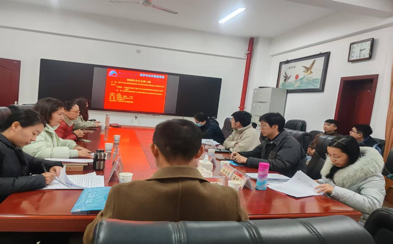 2025年12月23日下午,我院以“数字平台反垄断规制与宅基地功能转换的耦合发展路径研讨”为主题的明湖学术沙龙13期在立言楼A427成功举办。本次沙龙由副院长王明教授主持,姚青、范晓韵两位老师分别作专题发言,徐金燕、江河、陈浩老师担任与谈人,公管系老师及部分学生参加。