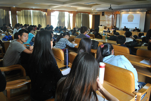 | 2014 年 10 月 16 日 上午 10 点,湘潭市雨湖区人民法院民事审判庭在我校五教 2-4 教室就债务代偿纠纷案件进行了公开开庭审理。此次民事案件庭审由湖南科技大学法学院主办、法律协会承办,法学院法律系刘敏老师、 2012 级同学等百余名师生到场旁听。 庭审开始之际,书记员用庄严、肃穆的声音宣读法庭纪律,真实的还原了庭审现场。专属于法律的魅力深深的吸引住了在场的每一位同学,让他们都能真切的感受到法庭的庄严。法锤落下,由审判长宣布开庭,整个庭审期间,庭审都严格按照法律程序进行。 庭审结束后,刘敏老师表示,通过参加公开庭审,让同学能以最真实的方式去接触法律,减少了只是单纯书本教学带来的不足,可以更加好的提起同学学习法律的热情,案件内容虽然简单,但是却严格依照民事庭审程序进行,有利于同学更好的理解庭审程序。 12 级法学专业的同学张文说道:“这次的旁听很有意义,让同学们增长了不少法学实践知识,同时我也感觉自己的法律学习之路任重道远,需要不断努力。” (责任编辑:admin) |