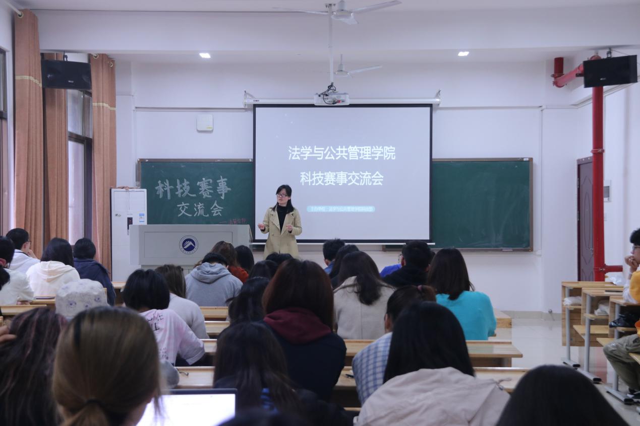 为培养学生独立思维的意识和创新思维的能力,加强同学们对科技创新赛事的了解,2021年4月25日下午4时,法学与公共管理学院科技部于立言楼A208举办了科技赛事交流会。此次讲座由胡之芳教授主讲,蒋会平书记、学工办辅导员禹晴和我院部分本科生参与了本次活动。