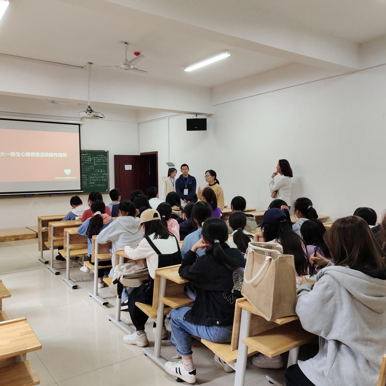 然后,心健部委员向同学们介绍了本次心理健康普查的重要性以及注意事项,并指导同学们进入测评平台,帮助解决同学们遇到的各类问题。