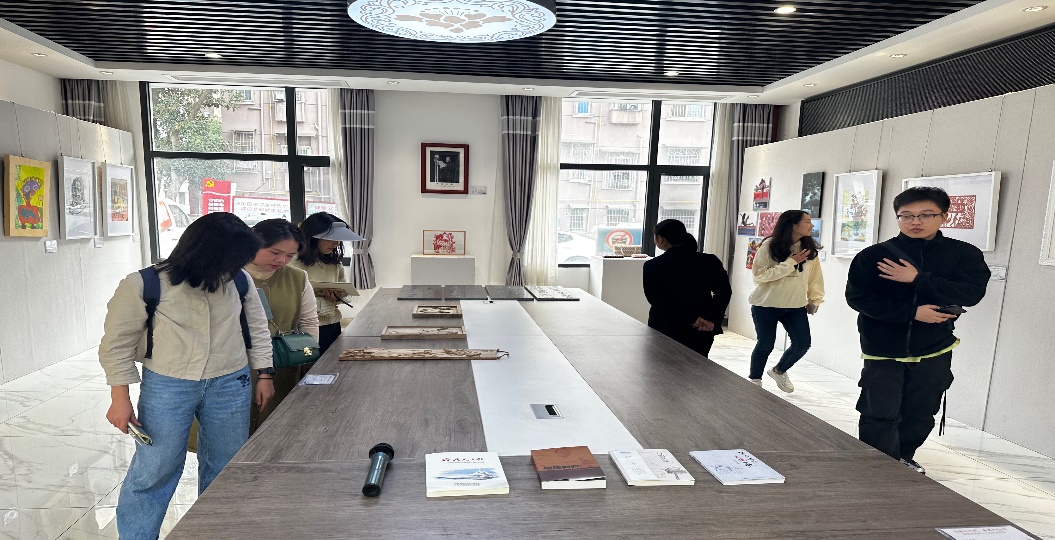 调研团队到达洗脚桥社区后,得到社区领导干部的热情接待。首先,社区干部向调研团队介绍了洗脚桥社区的总体建设情况和特色成果之处;接着,参观了社区红色文化教育基地、社区文化图书馆、残疾人协会活动室、禁毒教育基地,并观看了禁毒教育宣传片。社区干部耐心详细地介绍各类基地建设的历史、成效和影响,使调研团队对社区治理的各块工作有了全面深入的了解。参观结束后,社区领导干部和调研团队师生在社区会议室进行座谈交流。调研团队师生对社区治理的养老、经济、安保、福利等方面的问题向社区干部进行咨询交流,社区相关工作人员都耐心给予了解答。座谈结束后,徐金燕老师和曾东霞老师对社区干部的热情接待表示衷心的感谢,并就今后开展产学研合作提出了规划和设想。