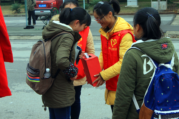 | 2015 年12月5日,第30个志愿者日如期而至,我院青年志愿团积极响应志愿队伍的号召,将“怀大爱之心,行志愿之路,志者无怨,愿者无悔”的志愿精神铭记于心,并自发开展了一系列献爱心、送温暖的活动。 爱心义卖 助力志愿 12 月6日8时许,我院青年志愿团携手教育学院、能源学院志愿团在电信路口、美食广场开展爱心义卖活动。志愿者站在凛冽的寒风中,尽管手和脸冻得通红,但看着衣物、书籍、玩具等一件件卖出去,内心无比喜悦,似乎忘却了冬的严寒。据悉,此次活动过后,志愿团将用所得资金为贫困地区的人们购买棉袄,让他们温暖地度过这个寒冬。 十年如一日 助老在窑湾 十一载春秋,志愿心未变。12月6日8时许,志愿团成员一如既往地来到窑湾社区照顾孤寡老人周满珍。他们帮年迈的老奶奶去市场买菜、米、还有她最爱的五花肉。集体打扫院子,劈柴火,忙得热火朝天、不亦乐乎。休息之余,大家陪奶奶唠唠家常,奶奶总是笑得合不拢嘴。因为志愿团,她不再孤独寂寞,十一年来他们已然成为相亲相爱的一家人。 虽是天寒地冻,志愿者却用爱温暖这世界。他们以真诚服务,用热忱奉献,也许他们的面孔不会被人记住、名字不为人知晓,但在12.5志愿者日,他们就是雷锋,请向他们道一声:“志愿者,你们辛苦了。” (责任编辑:admin) |