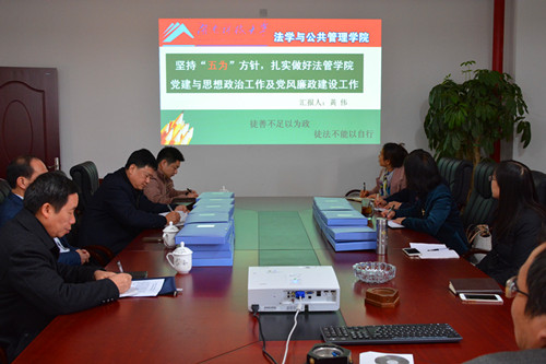 (图片来自湖南科技大学大学生通讯社) 12月8日上午,校长李伯超任组长,组织部部长刘龙洲、监察处副处长蒋洪沙等组成的学校党建与思想政治工作及党风廉政建设工作检查小组来我院检查工作。 首先,刘部长简要介绍了本次检查的目的、内容和程序要求;接着,我院党委副书记叶军向检查组汇报了我院的基本情况、工作成绩及党风廉政建设的工作经验;然后,检查组领导详细查阅了我院精心准备的各种材料;最后,李校长对我院工作做出了充分肯定,他认为法学与公共管理学院对这次检查非常重视,材料齐全工整;党委作风好,工作规范有序;服务意识强,注重为师生服务;学风建设好,注重培养学生的能力;新的法管学院继承了法学院风清气正、团结务实、廉洁自律的良好风气,希望能够继续发扬! 能够得到校领导的肯定,我院师生备受鼓舞,纷纷表示一定继续努力,进一步做好本职工作,为壮大法管学院,为建设美丽科大贡献自己的力量! (责任编辑:admin) |