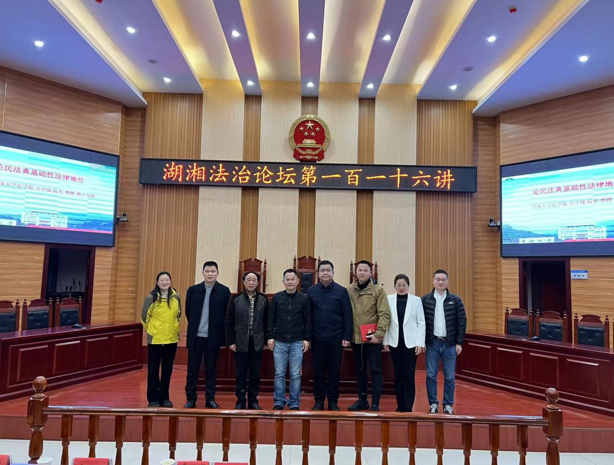 2024年3月15日,法学与公共管理学院邀请中南大学法学院院长、二级教授、博士生导师许中缘教授在立言楼A3-2模拟法庭开展《论民法典的基础性法律地位》主题讲座,我院院长邱帅萍教授担任主持人。出席本次讲座的有我院党委郑海祥书记、副院长宋智敏教授、胡之芳教授、黄素梅教授、马驰升副教授、李倩副教授、夏飞明老师等院领导老师、岳塘公安分局的领导及学院师生近200人参加了讲座。