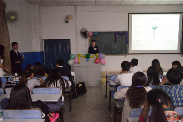 | 为让新生对我院毛泽东思想邓小平理论学习研究会、法律协会以及隐山哲学社有更深入的了解,10月16日晚7点,社团推介大会在八教2-3顺利召开。到会人员有我院辅导员赵晗冰老师、毛研会第24届理事长伍万顺、第13届团委学生会主席团成员、法学院全体15级新生以及潇湘学院法学专业15级学生。 “与学校其他社团相比,我们学院的三大社团更具有专业针对性,社团也会组织开展与专业相关的学术活动,让大家在活动中了解更多的专业知识,开拓大家的眼界。”赵晗冰老师首先概括介绍了我院社团性质。 毛研会理事长章豪在会上以视频形式向大家展示了社团刊物《实事纵横》以及社团活动,诙谐幽默的视频引得在场新生笑声连连,也让大家感受到了社团内轻松的氛围。法协宣传部部长肖竹晖介绍到:“法律协会是一个培养你法律意识的地方。每年通过开展3.15消费者权益保护以及12.4宪法日普法宣传等活动,让大家在活动中了解更多的法律知识”。同样他也为大家展示了法协的各类特色活动以及法协的特色刊物——《法眼》。“不争其光,独一无二”是隐山哲学社的社团精神,安金阁社长向同学们解释隐山哲学社为一个学术性组织,更强调“精神为魂,组织为骨,人之为行”的社团宗旨。他对与会同学提出了“今日之中国,全在我少年;科大之气象,全在我学子”的要求与期望。在我院三大社团介绍之后,社区法制服务社社长唐成也对社区法制服务进行了简要介绍。 一个半小时的社团介绍在各位推介人全面展现下转瞬即逝,最后社团实践部部长向寒对次日的百团招新进行动员,“百团招新是由校团委学生会组织的全校性社团招新活动,在这里不仅可以看到我院社团院风采,还可以领略学校社团的魅力。社团是展示自己的舞台,更是锻炼自己的舞台。百团招新,看你们的!” (责任编辑:admin) |