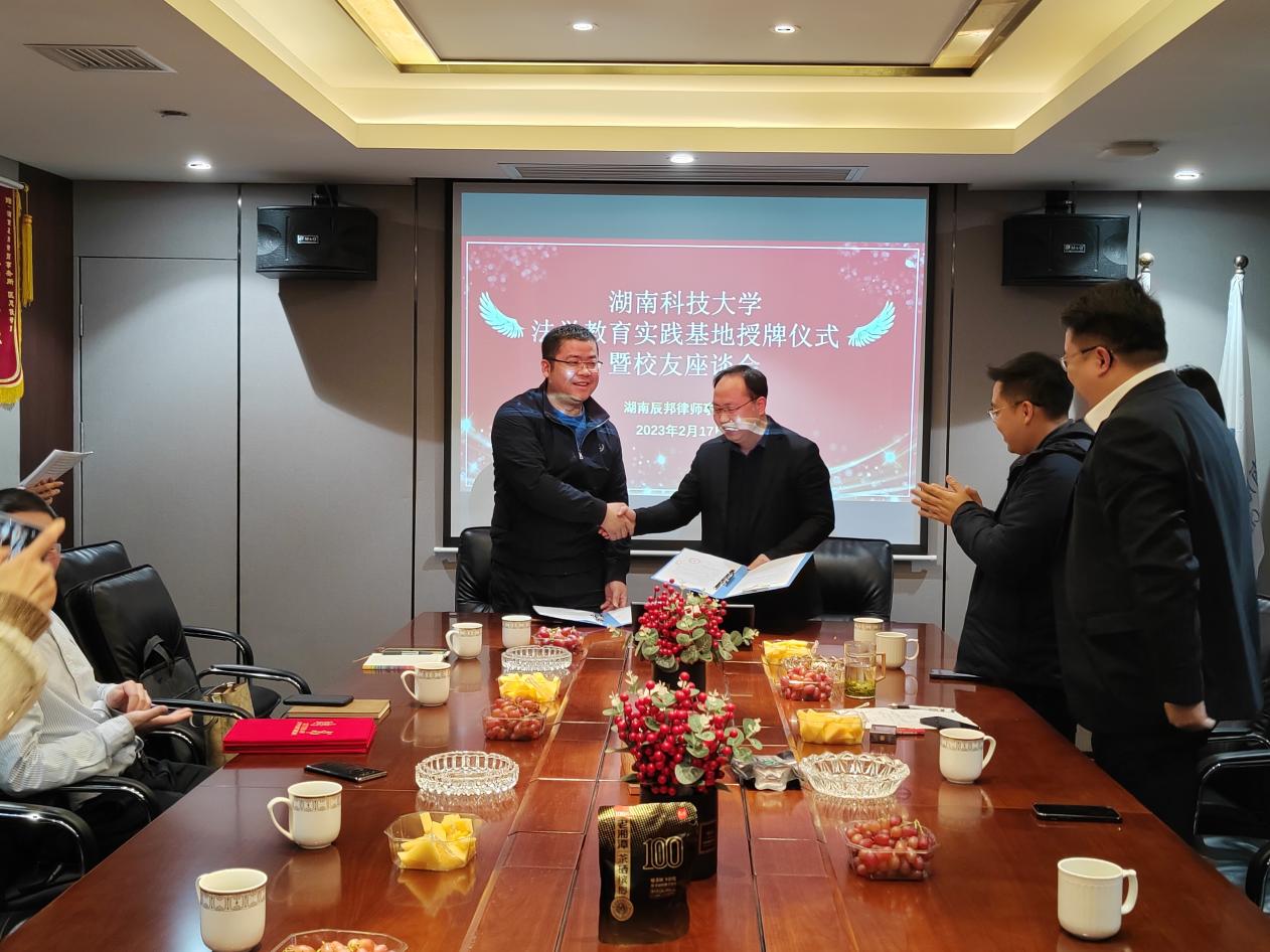 校所合作:湖南科技大学法学与公共管理学院与湖南辰邦律师事务所圆满举行法学教育实践基地授牌仪式暨校友座谈会