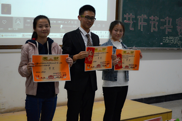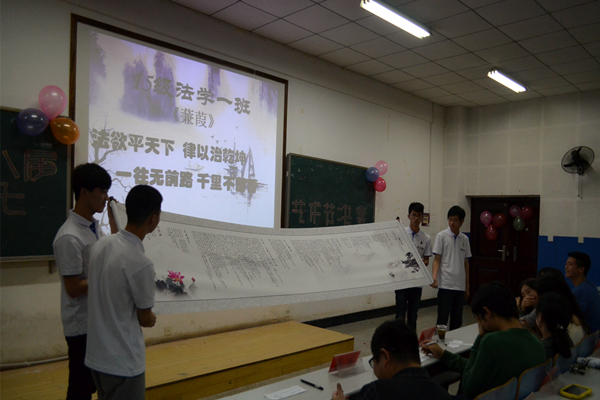 ——我院第八届班级文化艺术节顺利闭幕    4月22日晚7点,我院第八届班级文化艺术节决赛在八教3-3教室隆重举行,出席活动的嘉宾有学工办主任朱荣老师、辅导员伍安老师、广告部前部长林泓以及团委学生会主席团和各部部长。2015级全体学生到场参与此次比赛。 大赛开始,一段激情澎湃的宣传视频拉开决赛帷幕。大一生活的点点滴滴,历历在目,所有过往以班刊为载体,述说永不磨灭的同学情谊。 决赛分为班刊班徽的现场展示和拉票两个环节。班刊方面,无论是形式、内容亦或是排版设计,都打破了传统、独具匠心。法学四班的刊物采用了“双正面”的设计,杨沛霆同学解说道“第一封面以淡绿色为底,蕴含着低调的班风,第二封面色彩明快,象征着班级分工明确、积极拼搏的精神”;思政教育一班则是将自己班级的集体特色照片制作成日历,用四个富于质感的金属圆环穿接而成,颇具青春气息;法学一班则带来极具创意的卷轴式班刊——《蒹葭》,彰显了锐意创新、开拓进取的班级风貌,赢得了全场观众热烈的掌声,将全场气氛推向高潮。班徽方面,哲学班“以水墨画为主题,寓意着超脱、智慧的哲学思维。同时,徽章中心大写的‘P’代表着哲学的英文首字母,给人耳目一新之感”。拉票环节更是高潮迭起,思政二班改编了《北京东路的日子》;思政一班制作了视频《暴走吧!思一》;法学三班全体男生带来了笑料十足的小品《军训两三事》。 最后,法学一班喜将班刊制作、班徽设计第一名以及最佳解说等三大奖项收入囊中,思政一班和哲学班分别获班刊制作二、三等奖,法学二班和法学四班获班得班徽设计二、三等奖。思政一班获最佳编辑奖,哲学班荣获最佳创意奖。 “此次活动带给我们前所未有的惊喜,这是每个班集体智慧的凝结。没有大家做不到,只有我们想不到。希望大家把这么宝贝的作品留在学院,成为我们校友作品的一部分,今后大家回母校唤起共同的青春记忆。”比赛在朱荣老师的寄语中画上了圆满的句号。 (责任编辑:admin) |