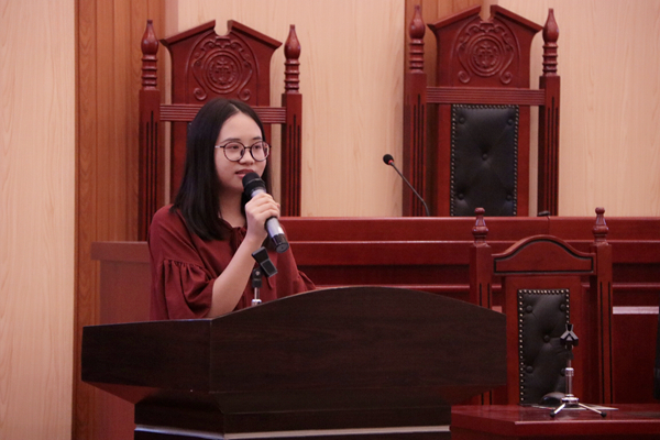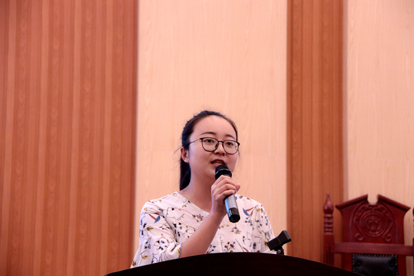副院长李云霖以PPT的形式,向同学们介绍了法学专业教育的培养目标,以及课程安排。“法学专业课程较多,老师会按照教学计划分配到大家四年的学习生活中,希望同学们认真学习,最终通过司法考试,成为社会正义的捍卫者。”李云霖老师说道。随后,17级法学专业高玥同学作为老生代表发言,她向大家讲述了她对大学自主学习的看法,并分享了她的学习心得,给新生以许多启迪。