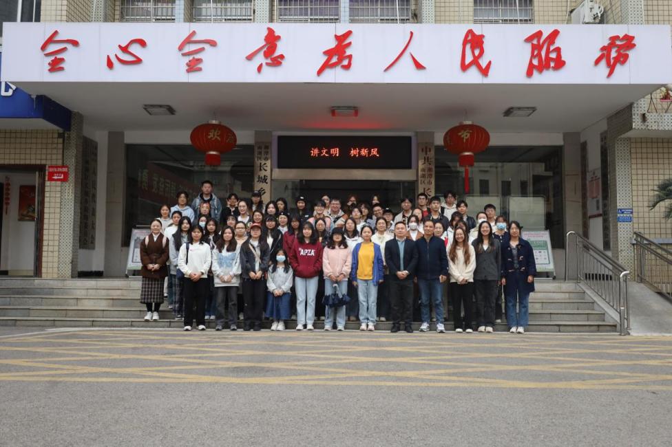 ▲学生在湘潭市雨湖区长城乡政府见习合照