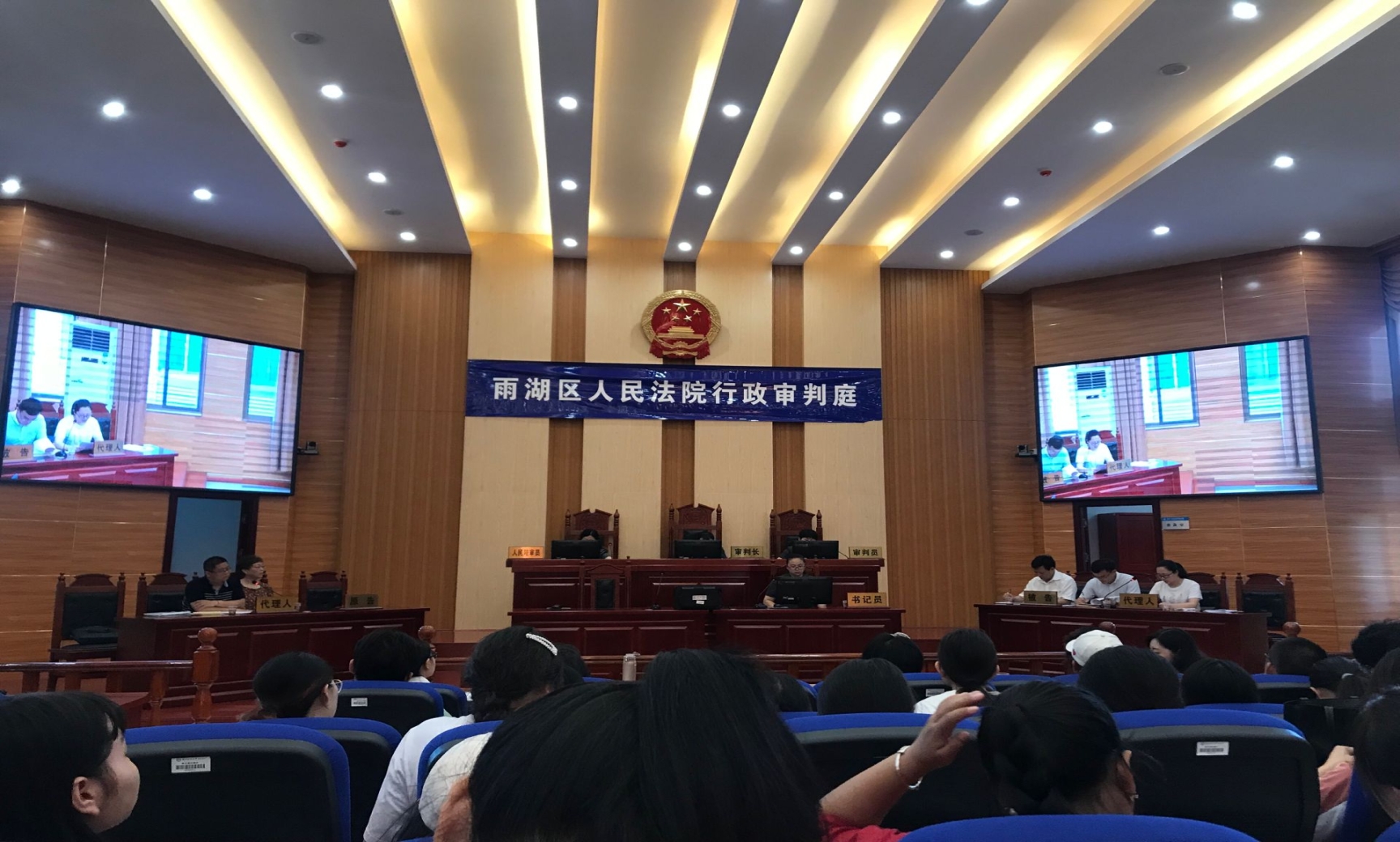 2019年6月20日,雨湖区人民法院行政审判庭来我院公开审理“胡庭忠诉湘潭市自然资源和规划局不履行法定职责”一案。合议庭由雨湖区人民法院行政审判庭庭长陈放民、副庭长曾辉、人民陪审员宋智敏老师组成。被告湘潭市自然资源和规划局的主要负责人到庭应诉。我院17级法学专业150名同学到场观摩。