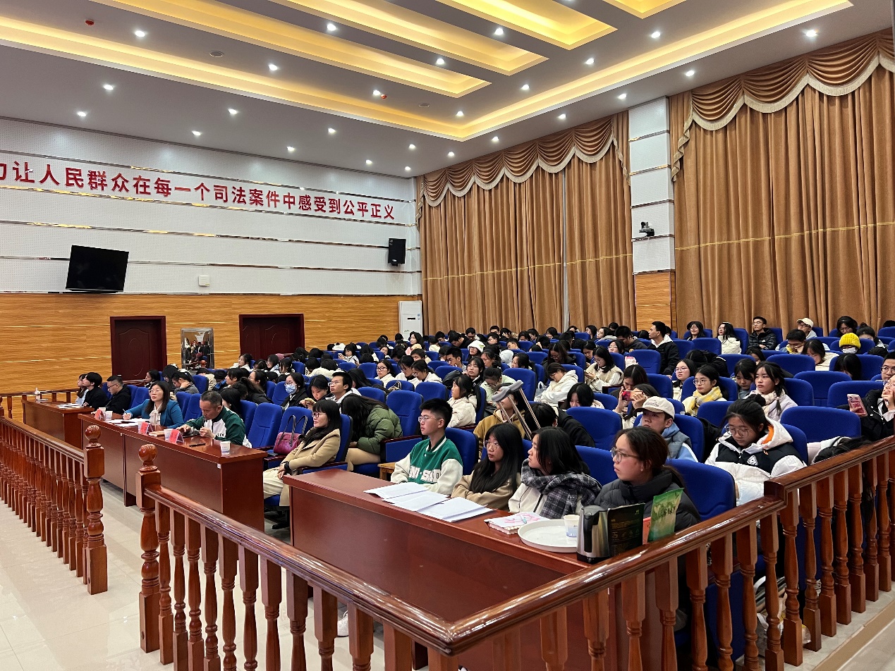 11月26,湖湘法治论坛第112讲暨耕熙法律实务讲堂第36讲讲座在立言楼3-2模拟法庭举行。本次讲座邀请郴州市中级法院执行局副局长陈建华、长沙天恒健律所高级合伙人李萍作为嘉宾,湖南科技大学法学与公共管理学院院长邱帅萍教授、副院长宋智敏教授、徐德刚教授及胡之芳教授等学院领导教授及我院学生参与此次讲座。讲座由胡之芳教授主持。此次讲座分为两个部分。第一部分是嘉宾发言,第二部分是受聘仪式。