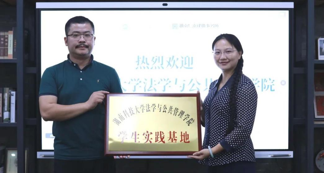 为进一步推动我校法学实践教育,增进校友联系,加强学术交流与沟通,2022年7月15日星期五下午,湖南科技大学法学与公共管理学院与湖南仁本律师事务所战略合作协议签订仪式暨学生实践基地授牌仪式在湖南仁本律师事务所举行。湖南科技大学法学与公共管理学院党委书记邱帅萍、副书记叶军、副院长宋智敏、法律服务中心主任马驰升、法学专业胡正昌和夏飞明老师、湖南仁本律师事务所创始合伙人舒蓉月律师、争议解决部门袁唯律师等参与了本次签订仪式。