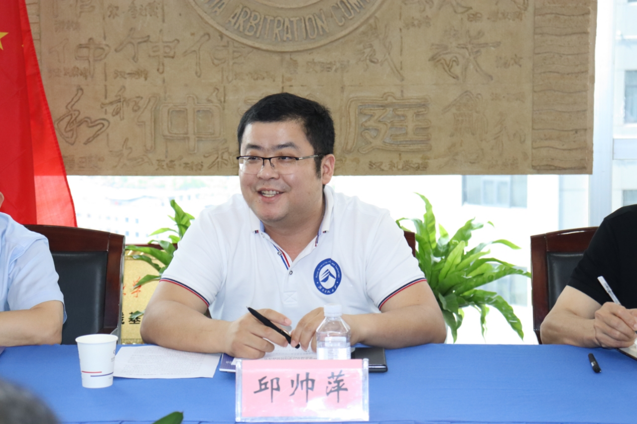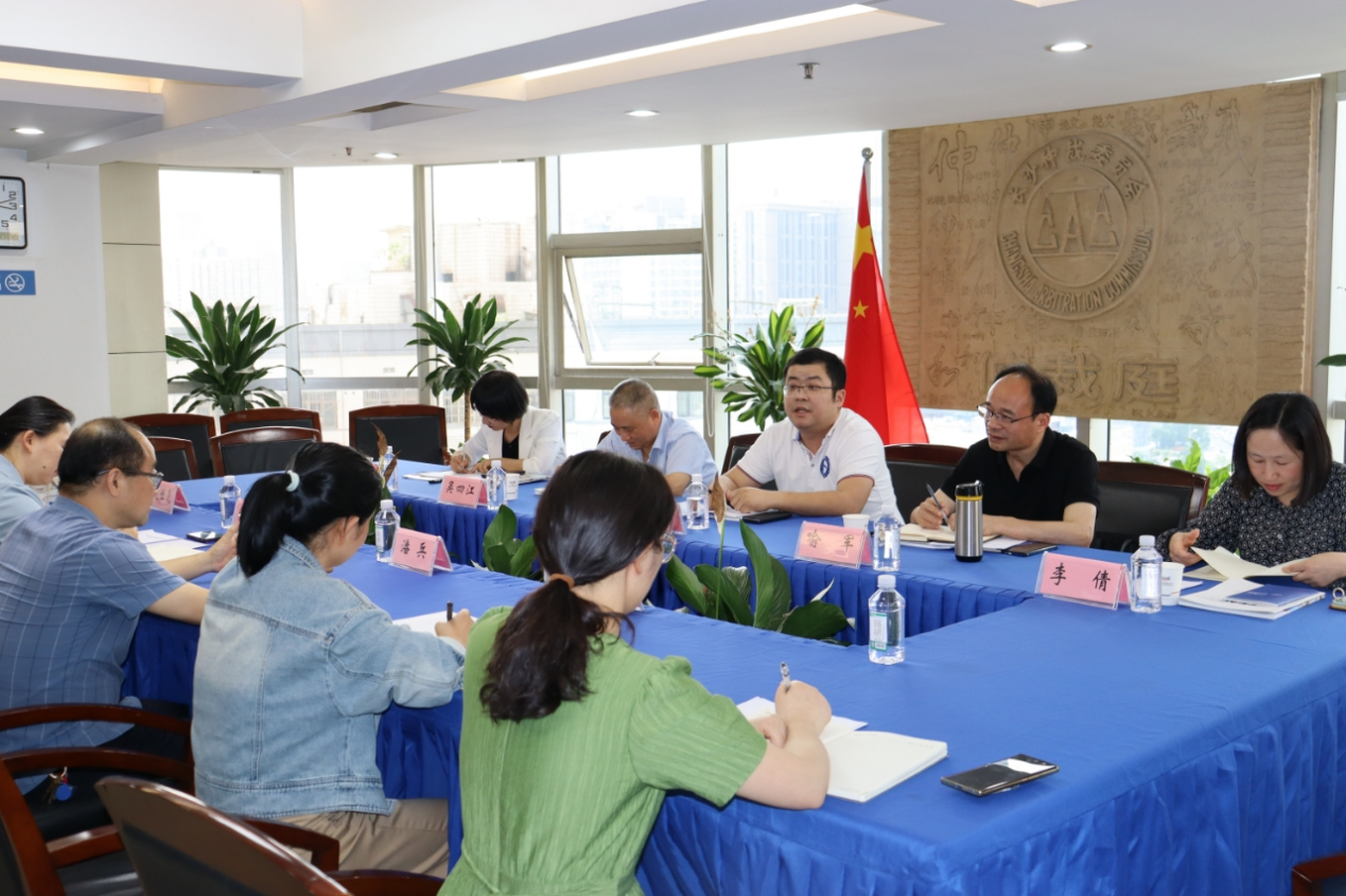 长沙市仲裁委副秘书长潘兵就长沙市仲裁委发展概况和对在校实习生的培养情况进行了详细介绍,并与我院教师探讨了仲裁制度建设与实务中的一些具体问题。联络发展部负责人傅媛媛,仲裁一部负责人赵世亮,仲裁二部负责人谭洁,综合部李爽等参与了会谈。