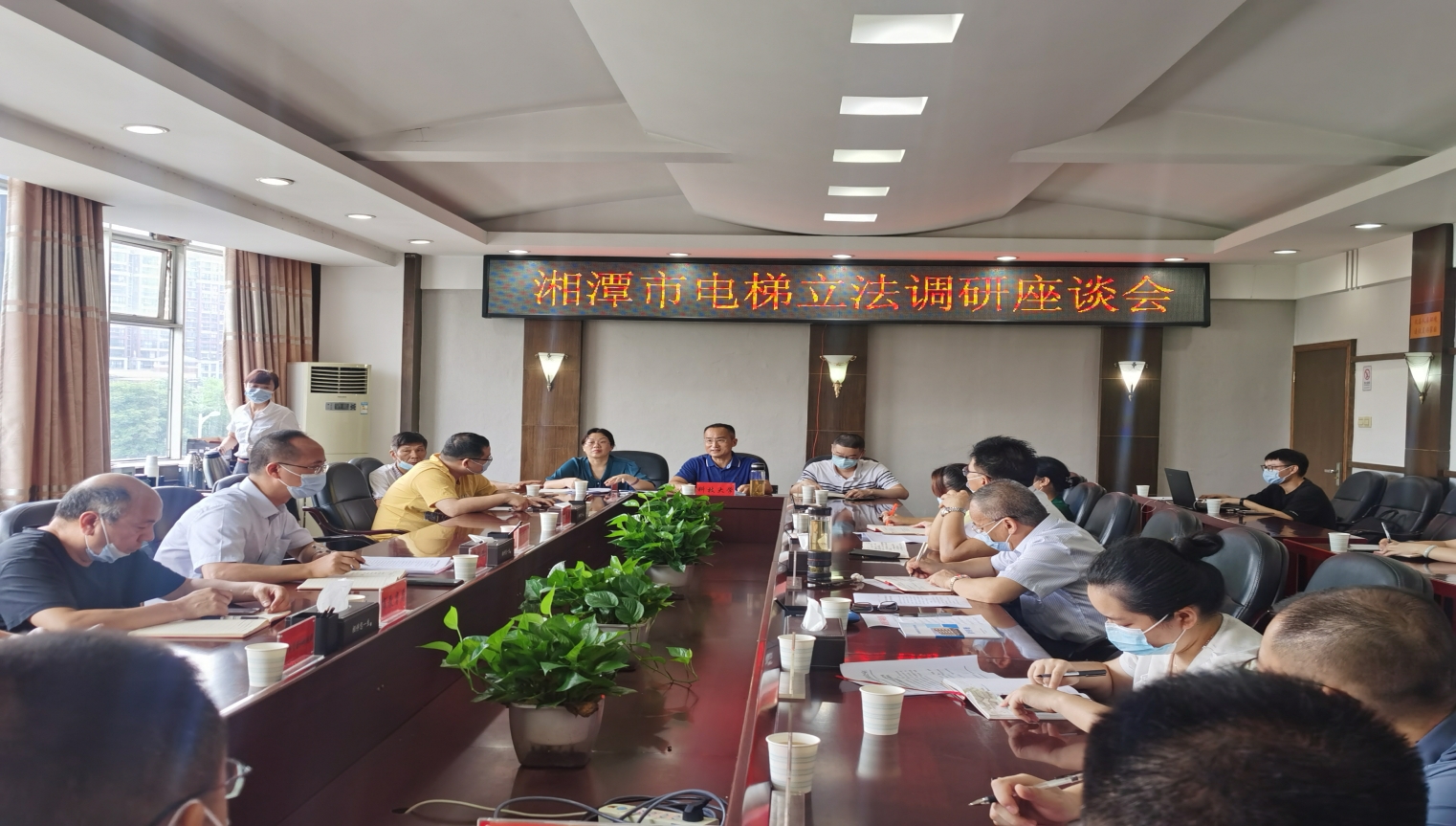 2021年7月30日,湘潭市电梯立法调研会议在湘潭市市场监督管理局召开。湘潭市人大法工委、湘潭市司法局、电梯监管相关职能部门、电梯制造、安装、维保企业代表,电梯使用单位,物业、电梯、保险等行业协会,乡镇、街道、社区代表参加了本次调研会。我院徐德刚院长、宋智敏教授、马驰升博士、朱正余老师,研究生袁叶飞应邀参加了本次会议。会上,徐院长介绍了我院立法团队长期致力于湘潭市立法调研、起草、论证、法治宣传的各项工作,取得了良好的社会效应。电梯安全管理立法是一项关系千家万户的民生工程,受到了市委市政府的高度重视和社会各界的广泛关注。项目主持人宋智敏教授介绍了电梯立法调研是湘潭市人大的一类调研项目,调研研究是谋事之基,成事之道。此次调研的核心就是要弄清楚为什么要立,能不能立和怎么立的问题,为市委和市政府提供决策基础。会上大家围绕电梯安全各方主体责任,老旧小区加装电梯等系列热点、难点、痛点问题进行热烈的讨论。