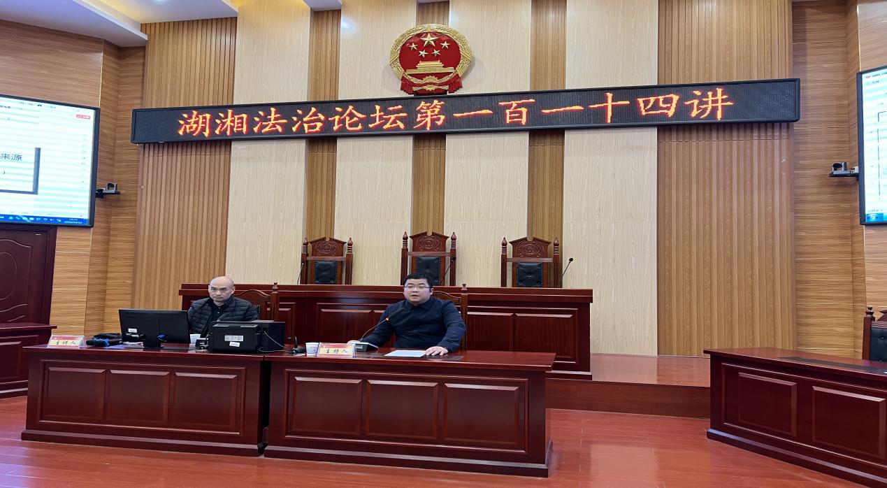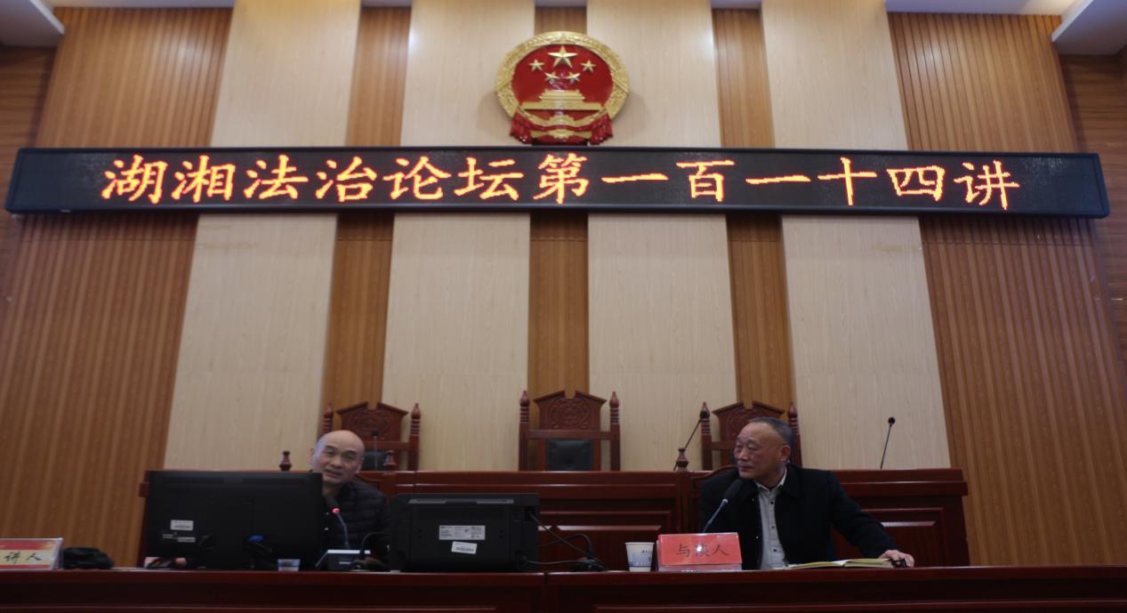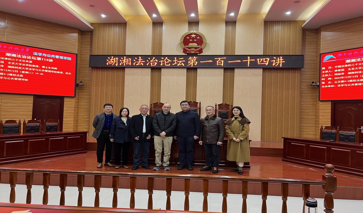 2023年12月12日湖湘法治论坛第114讲在立言楼A3-2模拟法庭举行,讲座邀请了北京大学法学院的徐爱国教授作为嘉宾,由湖南科技大学法学与公共管理学院的邱帅萍院长作为主持人,湖南科技大学法学与公共管理学院的胡正昌教授作为与谈人参与讲座,湖南科技大学法学与公共管理学院党委书记郑海祥、徐德刚教授、李倩老师等学院领导老师及学生也参与了此次讲座。