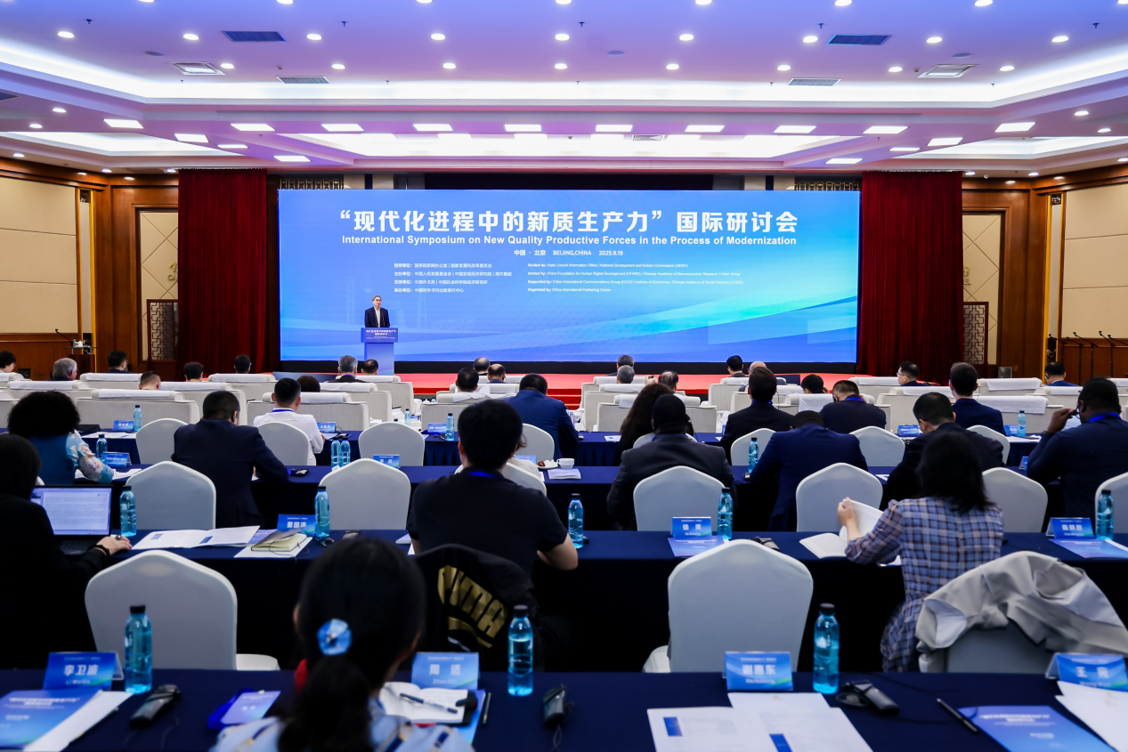 2025年9月19日,由国务院新闻办公室、国家发展和改革委员会指导,中国人权发展基金会、中国宏观经济研究院、海尔集团联合主办的“现代化进程中的新质生产力”国际研讨会在北京成功举办。来自中国、英国、韩国、土耳其等37个国家和地区的驻华使节、政府官员、专家学者、企业代表和国际组织代表共200余人齐聚一堂,围绕新质生产力的理论探索、政策实践与国际经验展开深入交流,并共同发出“携手发展新质生产力,培育经济增长新动能”的倡议。我院毛成毅博士应邀参加了此次国际学术盛会。