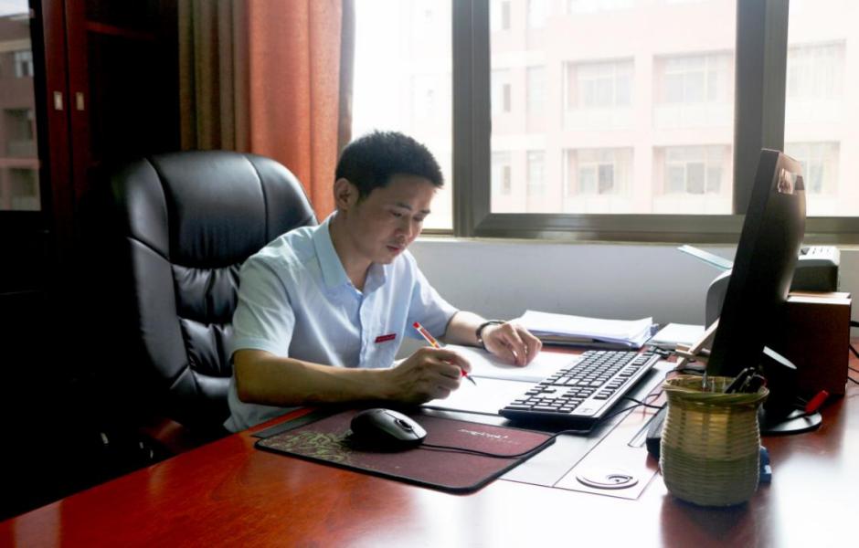 随手翻开他办公桌上的学生论文,每一本,大到篇章结构,小到文字标点,每页密密麻麻,写满了批阅的痕迹……认真仔细是他的真实工作写照。每天除了繁忙的教务管理工作,还有教学科研,他用实际行动向他的学生诠释了“认真”的态度。他经常劝诫学生,要逐渐养成认真做事的习惯,培养起脚踏实地做实事的品质,这样走上社会无论干哪一行都不会差。