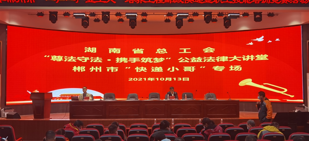 为做好八五普法工作,更好服务工会会员和各类劳动者,今年,湖南省总工会专门成立了由20位法律专业人士组成的“法治宣讲团”,我院徐德刚教授荣幸成为宣讲团成员。国庆节后,湖南省总工会“尊法守法、携手筑梦”公益法律大讲堂正式拉开帷幕。10月13日,受省总工会统一安排,我院徐德刚教授应邀到郴州市总工会开展法制宣讲,为120位“快递小哥”送去了一份法律大餐。
