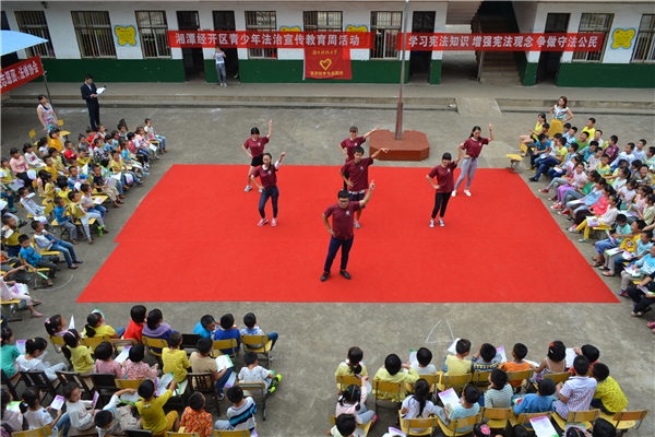 | 9月23日上午8点许,以“关爱明天,法治先行”为主题的青少年法制宣传周普法“微讲堂”系列活动在湘潭市杉山小学顺利举办。此次活动由湘潭市社会事业局、市经开区法制办、团工委以及湖南科技大学法学院主办,湖南科技大学法律协会和法学院青年志愿团承办。 杉山小学校长段勇致开幕词。他带领台下的小朋友一同宣读“学习宪法知识,增强法制观念,争做守法公民”活动口号,并教导他们懂得社会的规则分为“法律”和“道德”。“子不教,父之过,为了青少年的健康成长,有效预防青少年犯罪,我国专门制定了《预防未成年人犯罪法》来保障青少年的权利”,伴随主持人的抛砖引玉,关于《预防未成年人犯罪法》、《未成年人保护法》、《中华人民共和国义务教育法》的微讲堂依次开展。其间,志愿团独具特色的小品歌剧演出,更是生动形象地诠释了艰涩难懂的法律条文。小品《爸爸爸爸爸爸》中小学生智斗人贩子的故事,以简单的情节和幽默的对白,结合主讲人通俗易懂的法律授课,让在场的小朋友于欢声笑语之间懂得了诸多防范陌生人,寻求法律援助,保护自身安全的小常识。 此外,活动中还穿插了有奖竞答、学生才艺展示等丰富多彩的互动环节。融入法律小常识的娱乐游戏,让小朋友们在轻松愉快的气氛中潜移默化地接受法治文明的熏陶。相信这次普法微讲堂活动将会是参与人员们法律知识启蒙道路上铭记于心的一课。 (责任编辑:admin) |