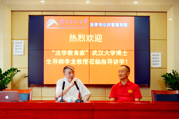 ——记湖湘法治论坛十七讲   9月20日下午4时30分,法学教育家、武汉大学资深教授、博士生导师李龙应邀来我院指导,并于文科楼A425会议室开展以“关于我国法学教育发展的几个问题”为主题的讲座。院长徐德刚担任主持,党委书记黄伟、副院长胡正昌、副书记叶军、专业老师李云霖、夏飞明、胡之芳、李倩和15级法学专业学生到场学习。 “法学最早研究的是人的行为规则,‘法典是人民自由的圣经’,我们研习法律,一方面希望确认和保障公民自由权利,另一方面也是确保公民正确行使自由权利。”李龙教授详细为大家讲述了法学教育的发展历程,从春秋子产造刑书到中国历史上第一部较完整的封建社会法典《法经》的制定, 从三国魏明帝时设律博士职专门传授法学到晚清法学家沈家本仿照西方模式修订法律。 “曾经的法学本科教育是有专业区分的。上世纪90年代末,国内法学本科教育改革呼之欲出。我当时曾指出,中国法学教育改革的关键在于更新法学教育观念,即摒弃从苏联沿袭过来的‘对口教育’理念,转而探求法学素质教育,着重培养学生的能力,并提出将过去分散的几个法学专业合并成一个法学本科专业。”李龙教授由此告诫大家在法学发展的新阶段要抓住机遇,并以新姿态、新思想去研究新问题。 结合当代法学教育问题的现状,徐德刚院长虚心请教:“老师应如何加强对本科生的培养以及法科生的未来趋势会是怎样的?”李龙教授答道:“我常常对我的学生提出‘三要求’,倡导‘三精神’。 ‘三要求’即要博览群书,要勤于思考,要笔耕不辍;‘三精神’即夯实基础理论的勤奋精神、联系现实问题的批判精神以及开拓理论前沿的探索精神。同时我们要看到法学的前途,积极奋斗,永不服输。”至此,讲座圆满结束。 (责任编辑:admin) |